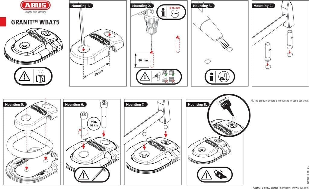 ABUS Wand- und Bodenanker Granit WBA 75 - Befestigungsanker für Fahrrad, (Neu)