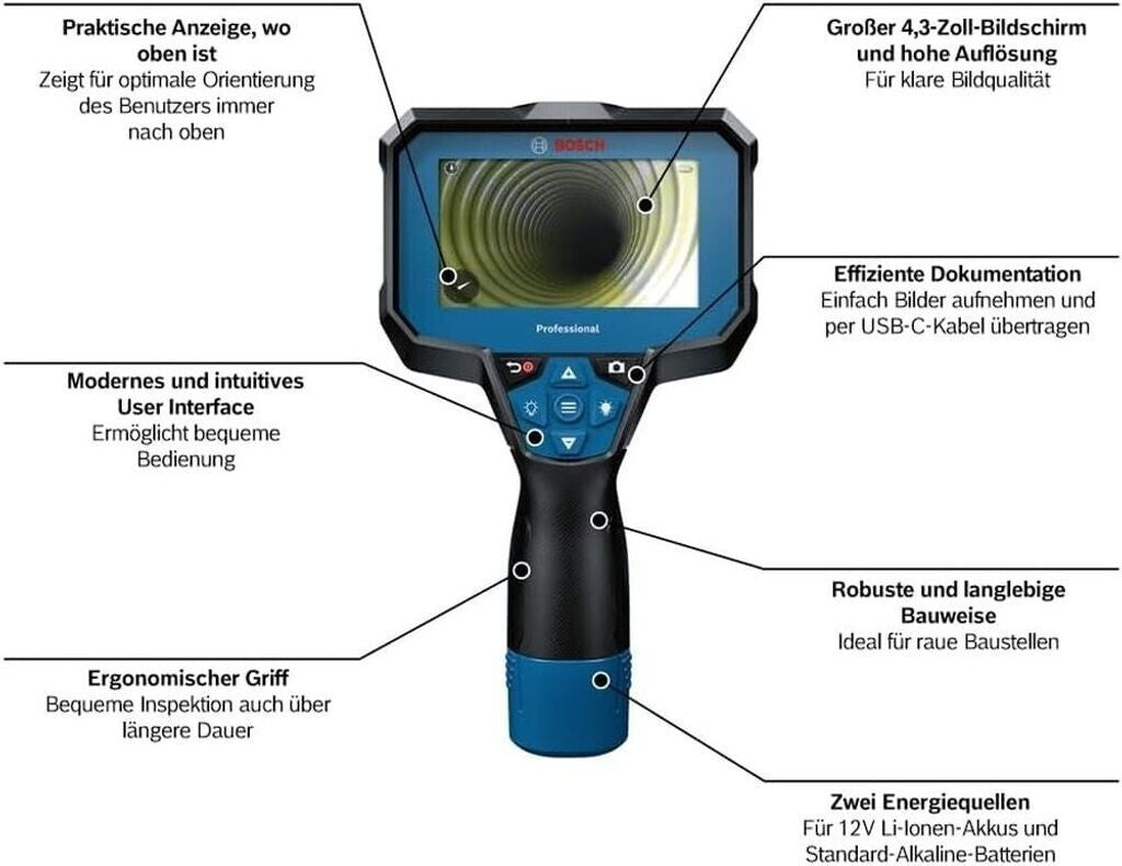🔍 Bosch Professional GIC 12V-4-23 C | Inspektionskamera mit 4,3" Display & Zubehör